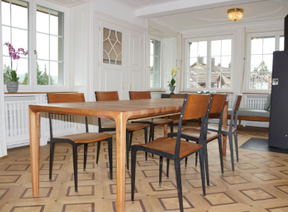 Markus Stalder ist der Kopf bei marbora. Er liebt das Möglichmachen – weshalb er auch alles Mögliche draufhat: Er ist gelernter Gestalter und Schreiner, war Geschäftsleiter einer Schreinerei und Schlosserei, verfügt über Erfahrungen als Spengler und Gipser und Grundwissen als Elektriker. Oder kurz: Er vereint alle Fähigkeiten für das reibungslose Zusammenspiel der einzelnen Kompetenzen.